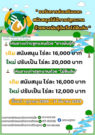 หากปลูกแทนด้วยไม้ยืนต้นชนิดอื่น จาก ไร่ละ 16,000 บาท ปรับเป็น 12,000 บาท