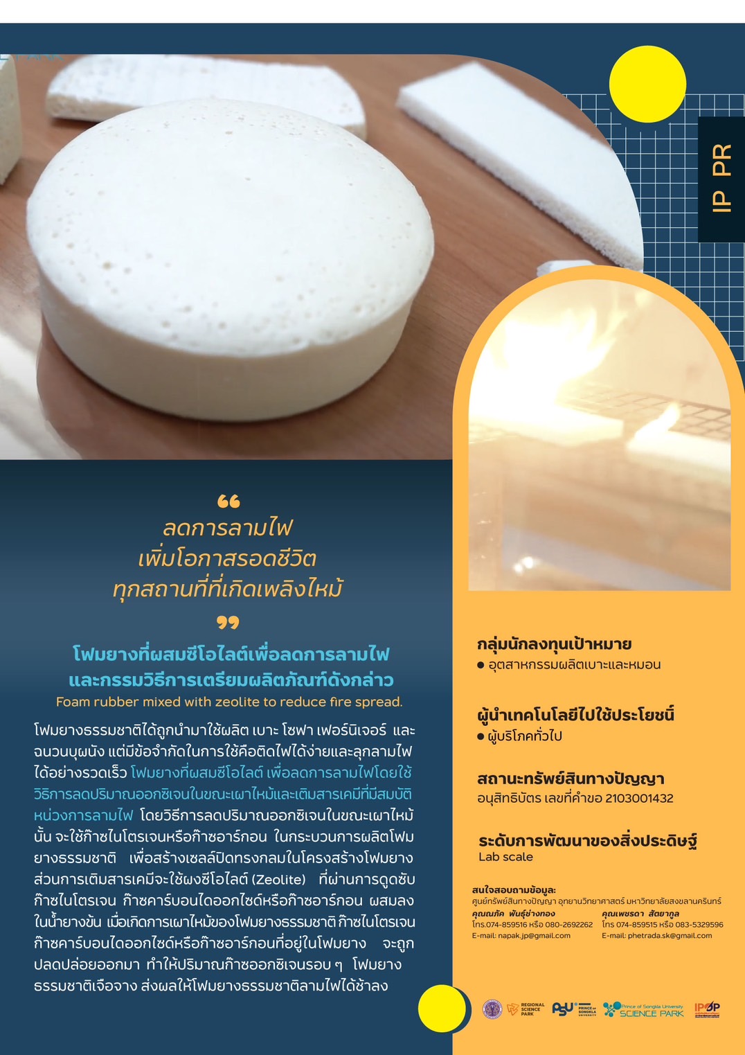 โฟมยางที่ผสมซีโอไลท์เพื่อลดการลามไฟ